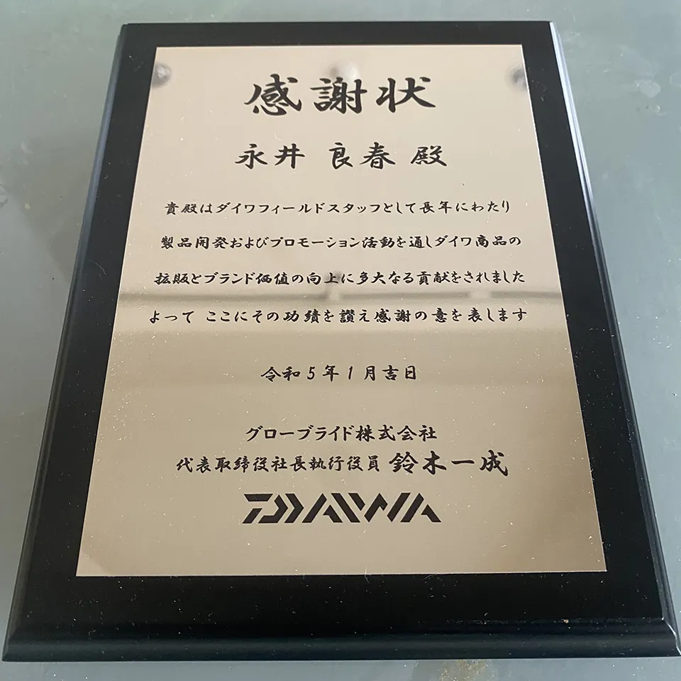 2022年の勇退時には、グローブライド株式会社代表取締役社長より感謝状を授与。